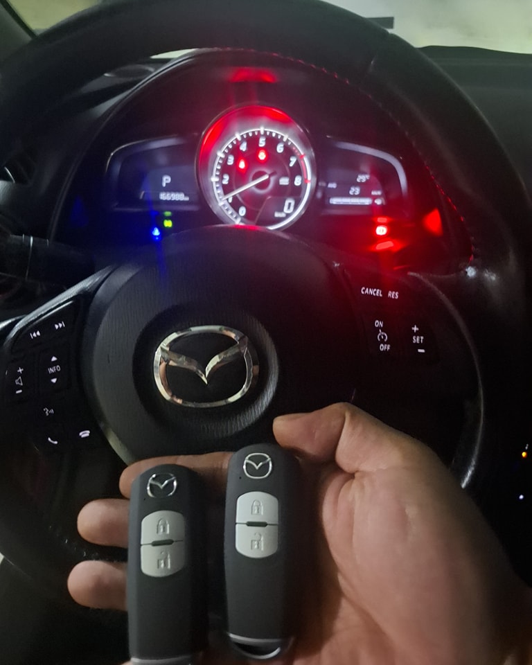 2017 MAZDA CX-3感應式一鍵啟動智能i-key 遺失▪︎損壞 新增配製/全丟無樣重配 本店現場無樣匹配製作實例